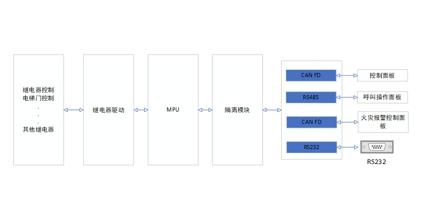 用戶操作控制面板信號(hào)通過(guò)CAN/RS485總線傳遞給MPU實(shí)現(xiàn)樓層的選擇、電梯門的開(kāi)關(guān)等控制。